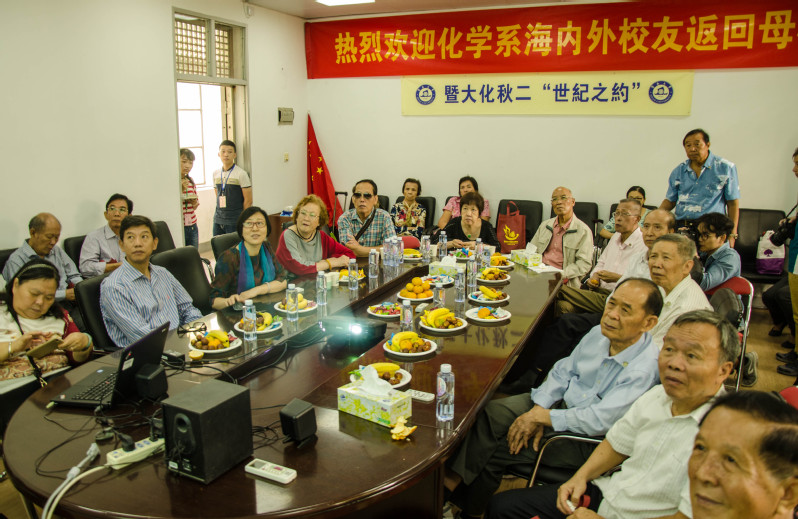 除此之外,校友们还悉心聆听志愿者对化学系的现状介绍,并热情地与之交流。关于化学系的光辉历史,众校友无不自豪:“孩子们,比咱化学系更‘老牌’的恐怕也没几个啊”“我们系是暨大唯一有属于自己的一栋楼的系呢!几十年没见,外面没变,里面新了很多呀!”当聊起化学系的美好现状与大好前景时,他们皆接连称赞:“听说化学和材料今年成一个院了,看起来学校对咱很重视嘛!”“化材结合,会越办越好的!”所有人都颇受鼓舞。
