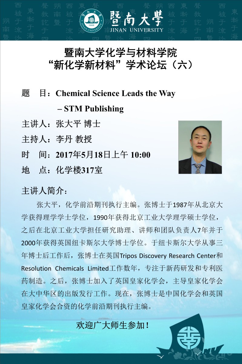 “新化学新材料”学术论坛(六)— 张大平博士