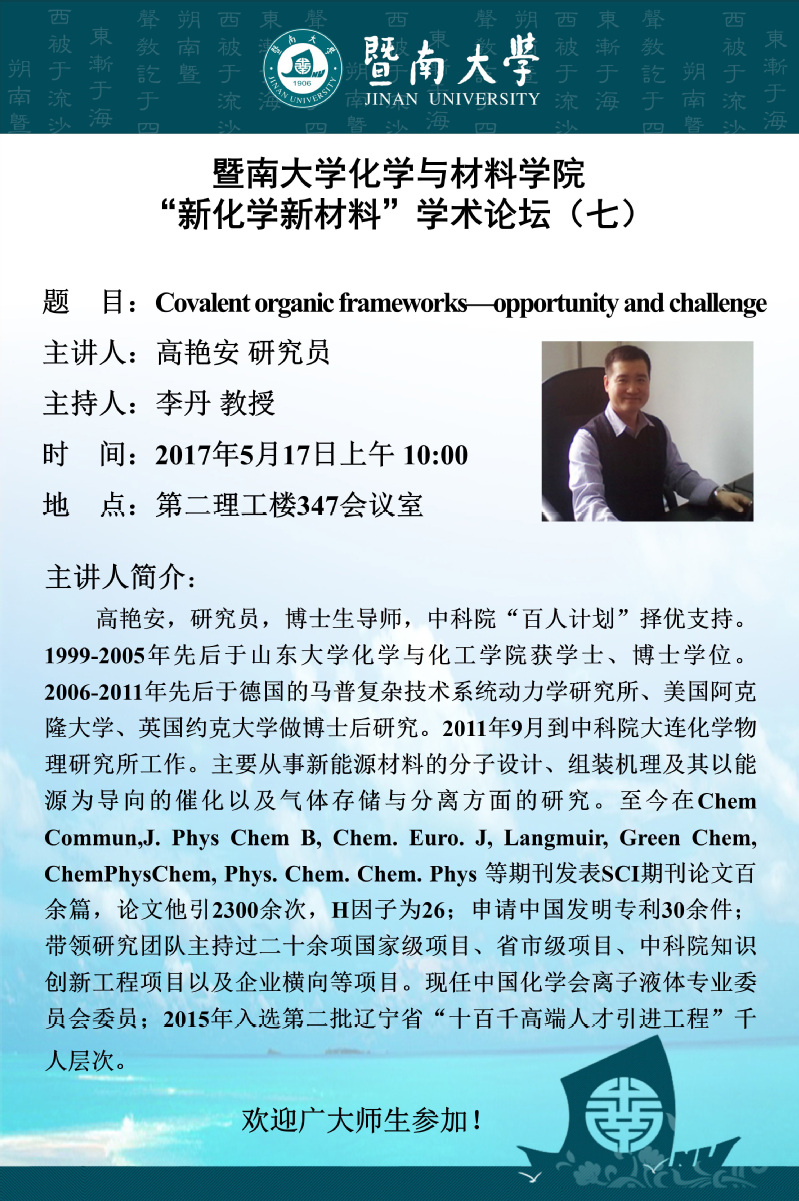 “新化学新材料”学术论坛(七)— 高艳安研究员