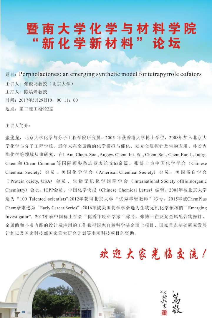 “新化学新材料”学术论坛(八)— 张俊龙教授