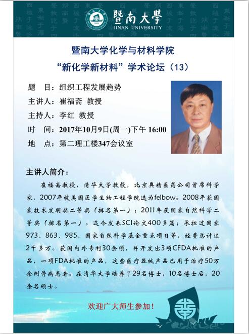 "新化学新材料"学术论坛(13)——崔福斋教授
