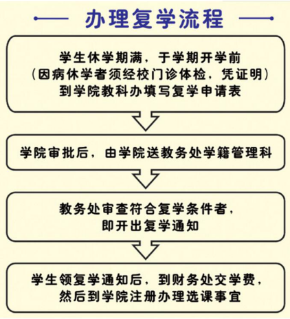 3.学院审批后,送教务处审查,符合复学条件者,即开出复学通知书。