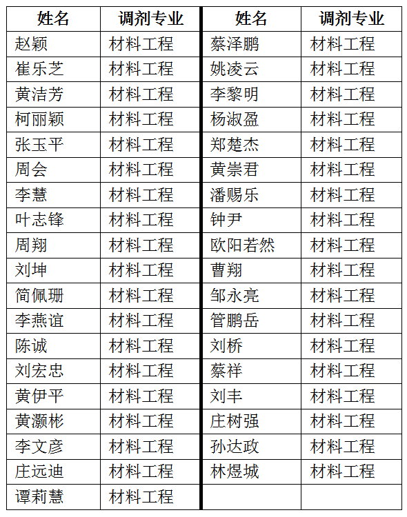 经学生意愿申请、学院审核,报开云kaiyun官方网站研究生院审批通过,现公布kaiyun官方网站入口获得2018年材料工程专业硕士研究生院内调剂复试资格的考生名单。