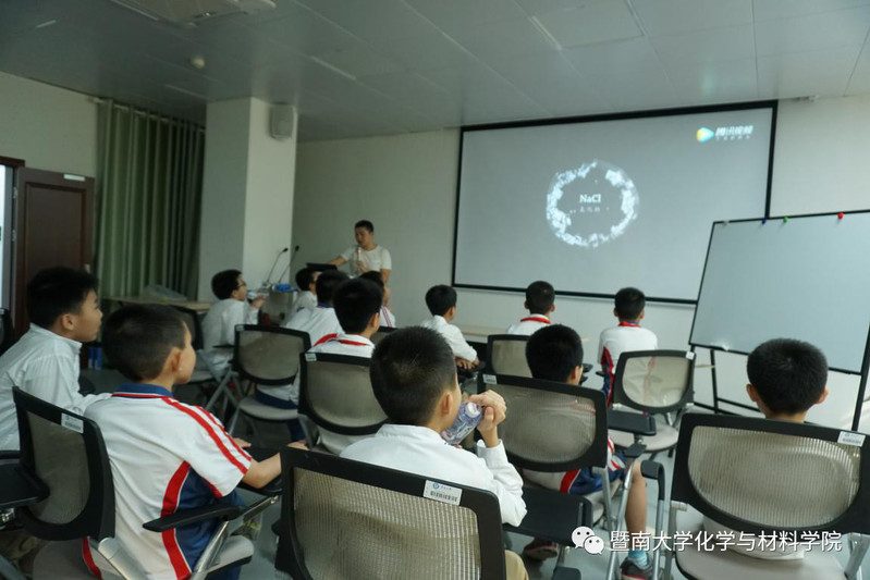 在多媒体演播厅,“魅力化学”短视频从微观层面展现了化学反应的神奇之处,引起了同学们对于化学实验现象的强烈好奇,大家纷纷摩拳擦掌,对即将到来的趣味小实验跃跃欲试。