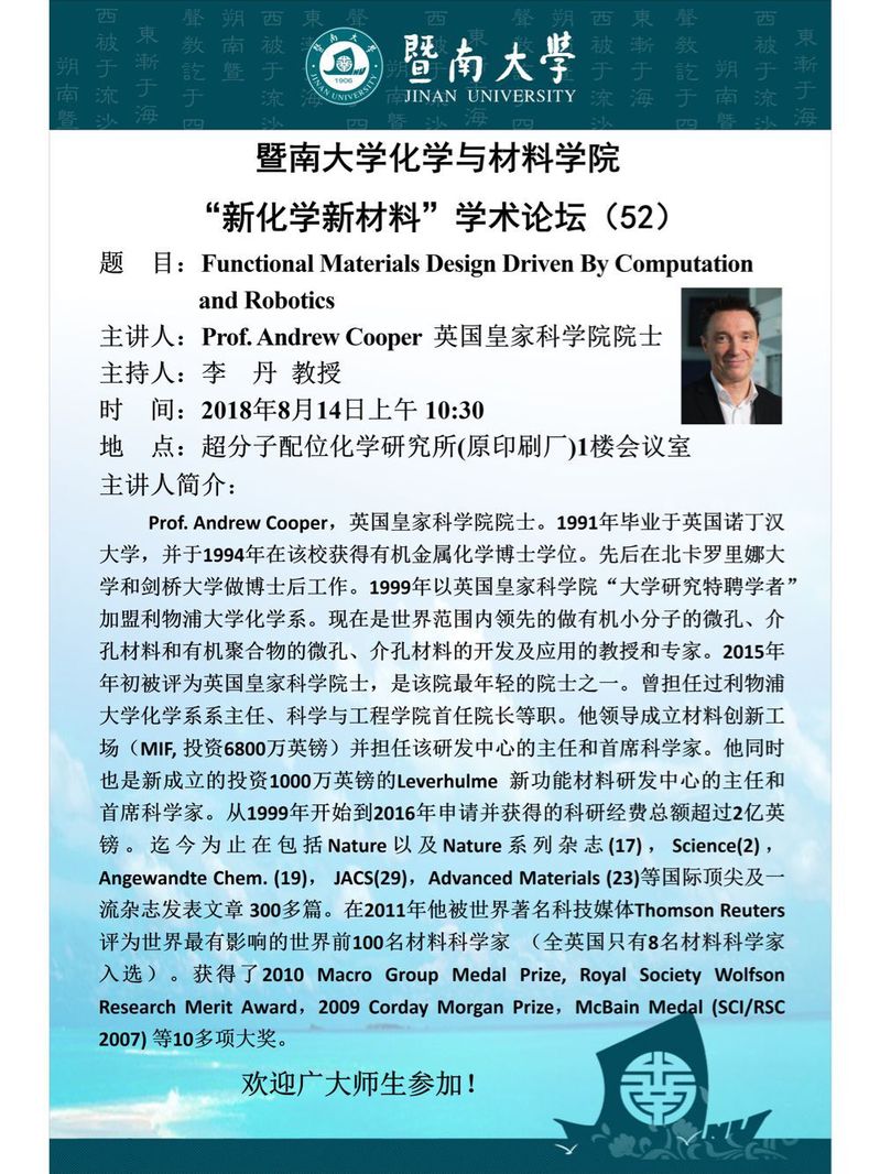 "新化学新材料"学术论坛(52)——Andrew Cooper教授