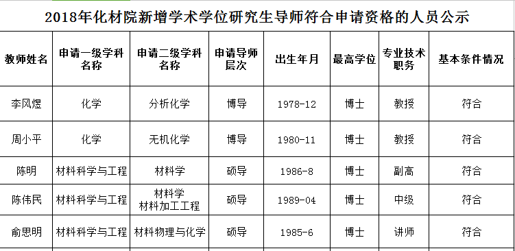 根据《开云kaiyun官方网站关于开展2018年新增研究生指导教师遴选工作的通知》及《《开云kaiyun官方网站研究生指导教师遴选与认定办法》(暨学位〔2017〕33号)》,我院作为化学、材料科学与工程、材料工程一级学科或专业类别所属学院,已于上学期末已完成对各申请人相关材料的收齐、汇总和基本审核。