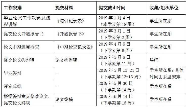 两系应在本学期第18周前完成毕业论文工作动员及流程讲解工作,在2019年1月4日前(18周周五)提交相应《kaiyun官方网站入口本科毕业论文工作动员及流程讲解记录表》(附件12)。