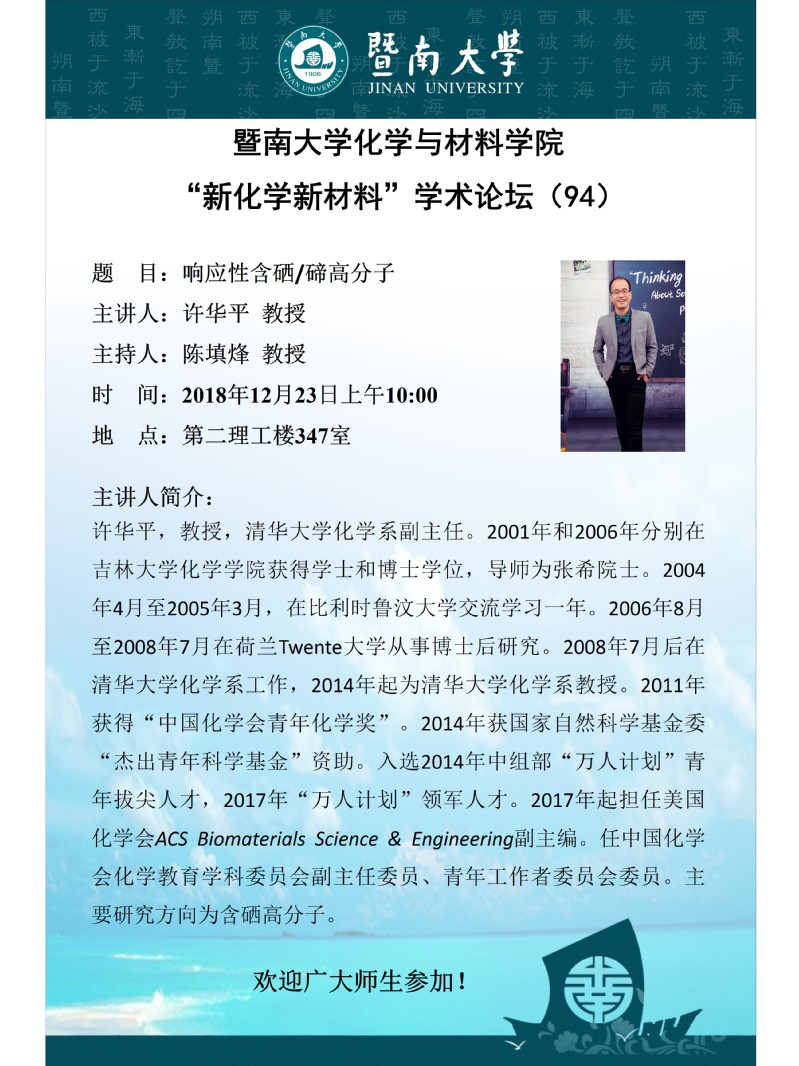 “新化学新材料”学术论坛(94)——许华平 教授