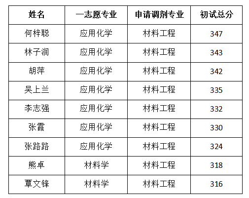 经学生意愿申请、学院审核,按照申请人员初试总分由高到低排序,现公布kaiyun官方网站入口获得2019年材料工程专业硕士研究生院内调剂复试资格的考生名单: