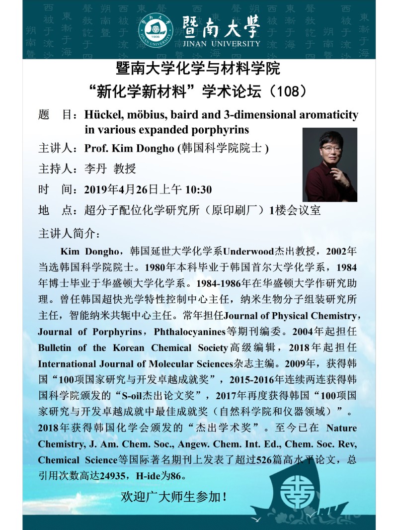 主讲人:Prof. Kim Dongho (韩国科学院院士 )