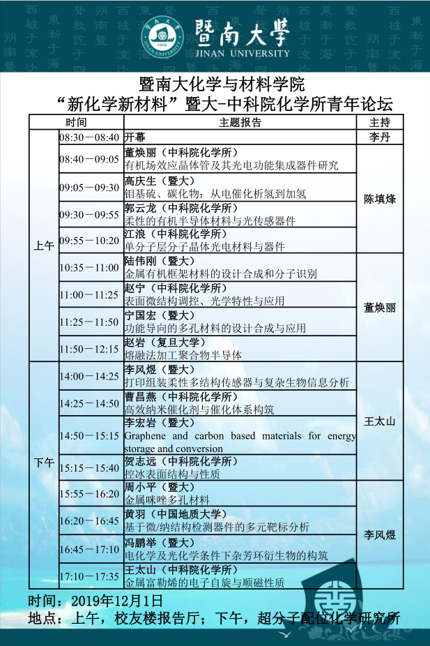 地点:上午,校友楼报告厅;下午,超分子配位化学研究所报告厅