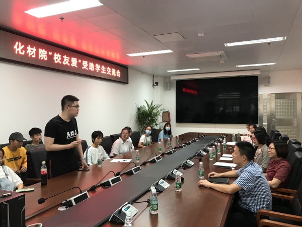 2020年11月15日下午15:00,学院党委书记邵桂珍、副书记陈文举,化学系党总支书记査海燕,“校友爱”基金骨干成员周韬、朱燕倩、陈义康,与17位“校友爱”基金受助学生在番禺校区化材楼2022会议室就同学们的学习生活情况开展交流。