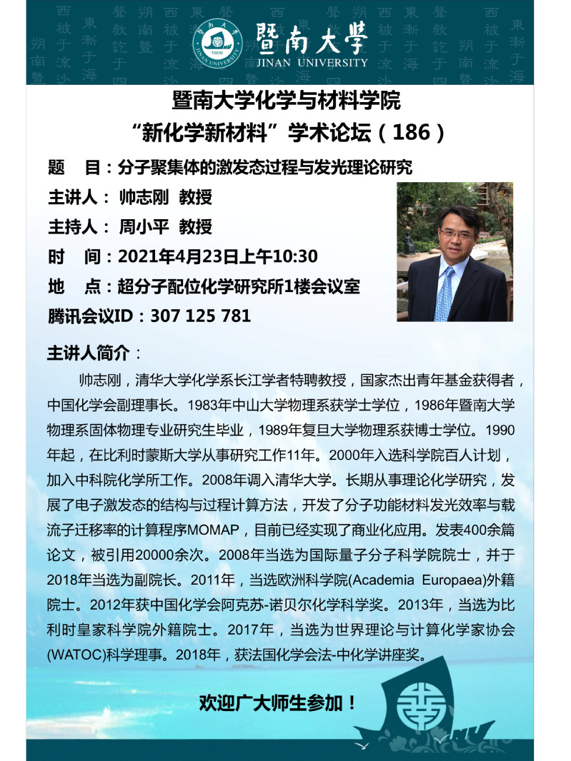 “新化学新材料”学术论坛(186)——帅志刚教授