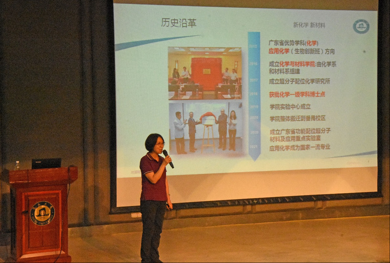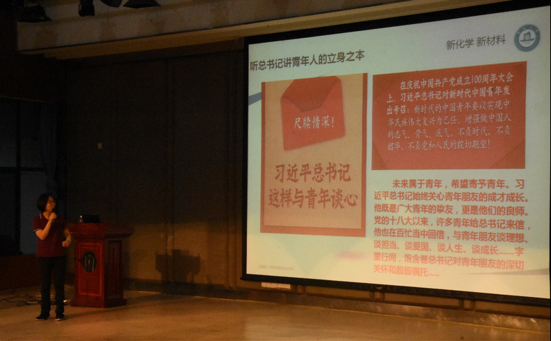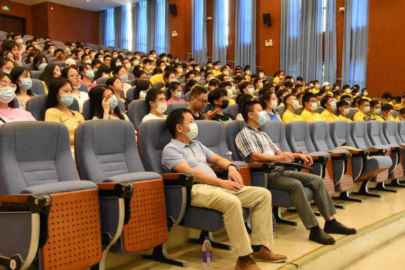 2021年9月8日下午,kaiyun官方网站入口新学期“书记第一课”在番禺校区教学楼N201课室进行,学院党委邵桂珍书记分别以“了解学院”和“梦想起航,奋进化材”为主题,给学院310名本科和研究生新生带来了一节生动的思政理论课。学院组织员曾希、研究生辅导员张晓婷与同学们一起聆听学习。
