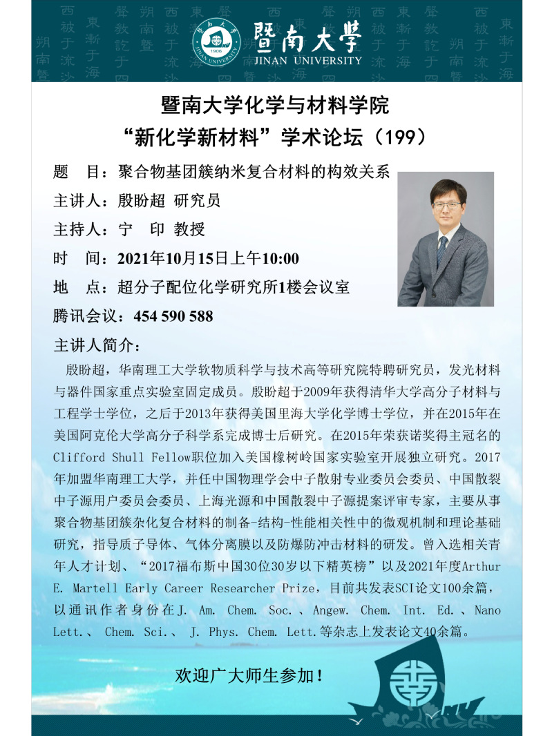 “新化学新材料”学术论坛(199)——殷盼超研究员