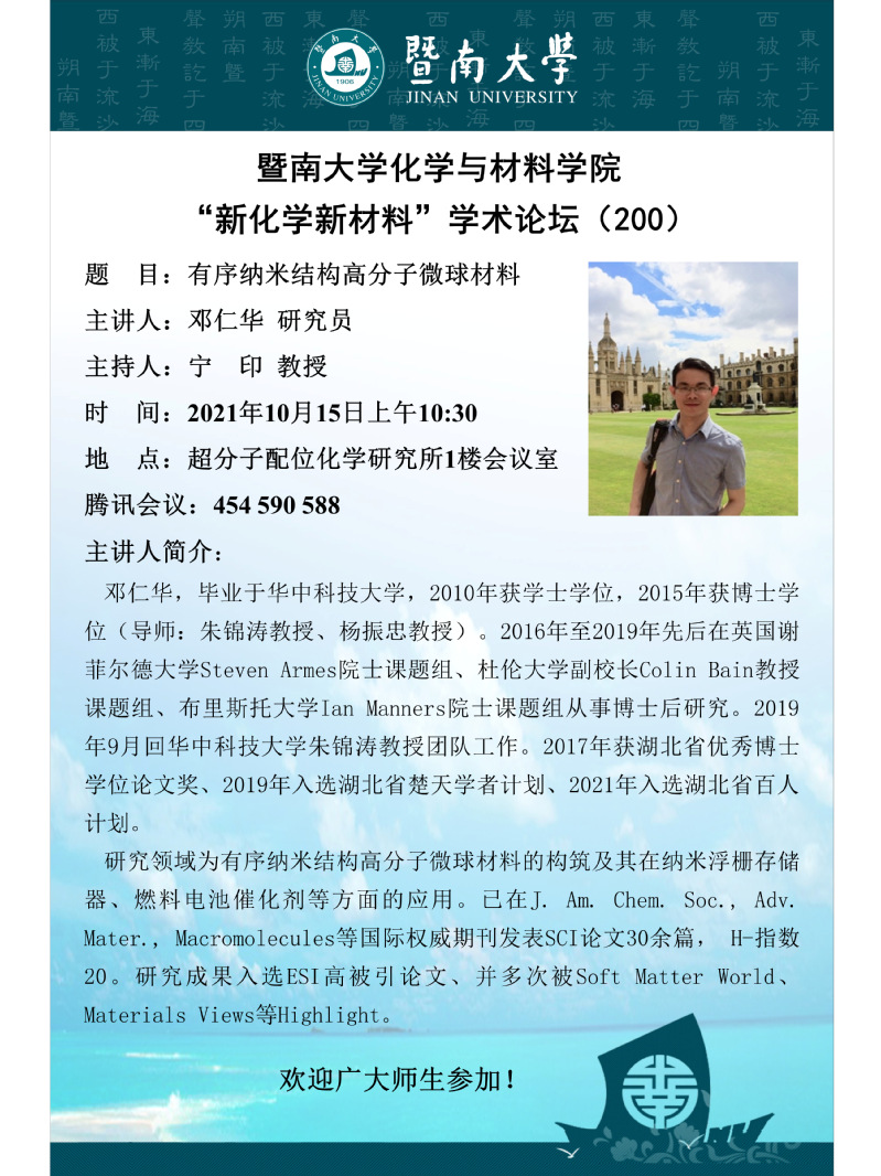 “新化学新材料”学术论坛(200)——邓仁华研究员