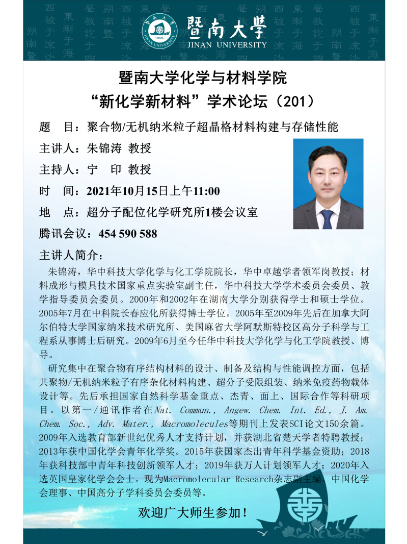 “新化学新材料”学术论坛(201)——朱锦涛教授