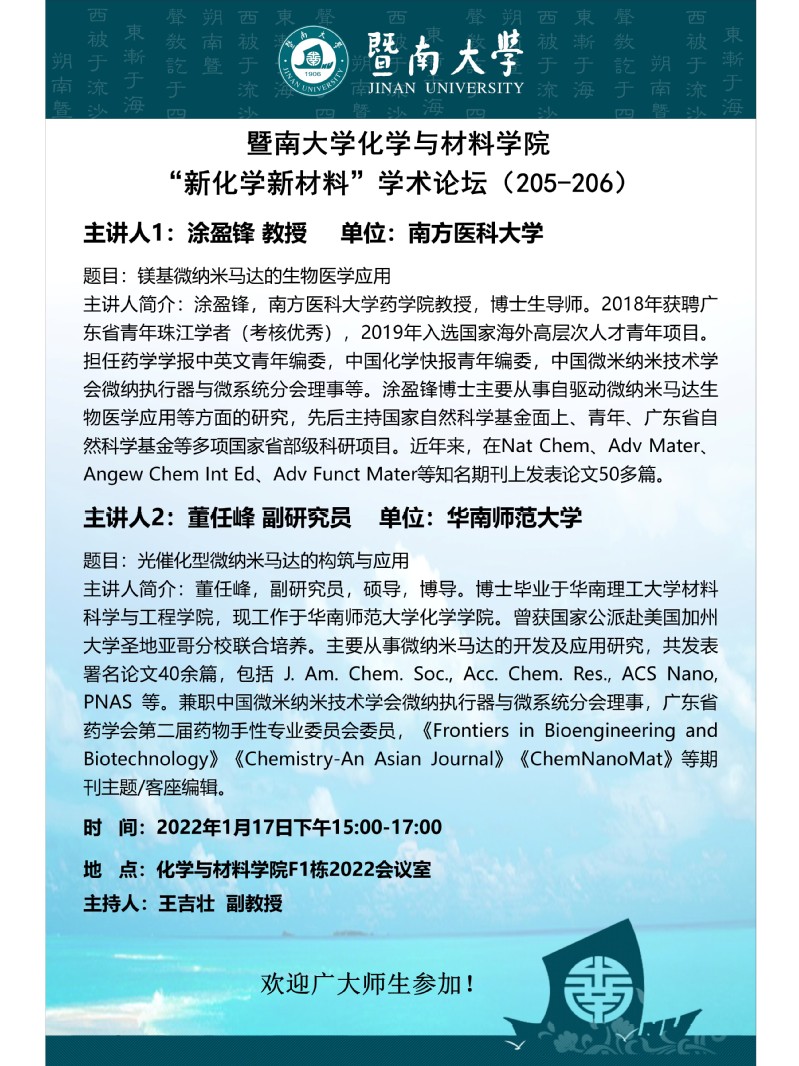 题 目:镁基微纳米马达的生物医学应用