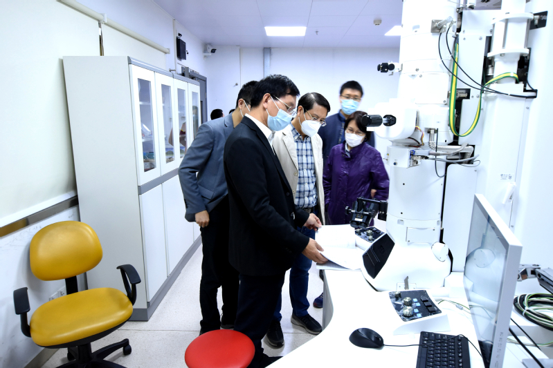 翁健一行查看了化材楼实验室的安全情况,对实验安全监控系统、实验室通风系统、楼道紧急冲淋洗眼器等设施进行了检查。在电镜室,翁健一行翻阅了仪器使用记录本,对学院贵重仪器的高频率共享使用情况高度肯定,希望能总结平台建设管理的成功经验,向全校推广。他指出,学院要继续加大共享力度,进一步提高贵重仪器在全校相关学科范围的使用率,并向校外开放,学校将提供必要的支持。他强调,要进一步完善实验室管理的制度建设,强化安全管理责任落实,加强实验室安全教育,切实提高师生安全意识,努力营造良好的实验室安全文化氛围,保障教学科研工作的有序开展。