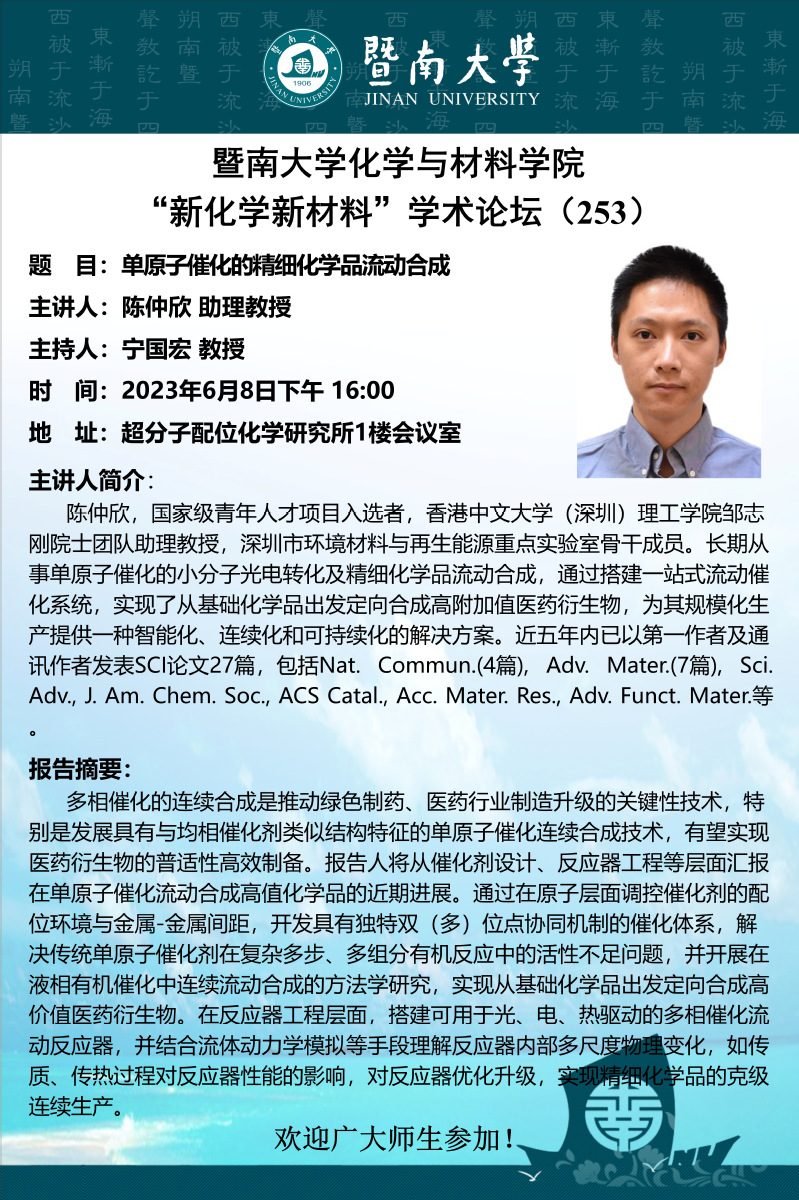 题目:单原子催化的精细化学品流动合成