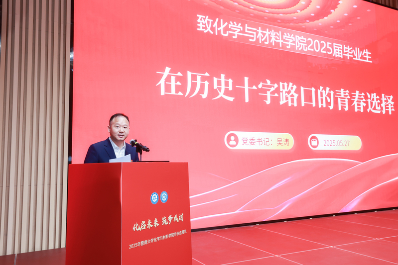 从陈填烽院长的殷切期望到吴涛书记的时代叩问,从茹佳怡的温暖回忆到谭一叶的科研哲思,暨南化材人以科学与情怀交织的底色,诠释了“强国有我”的青春誓言。愿全体毕业生在百年变局中勇立潮头,以“分子键结”之力,共筑华夏大厦!