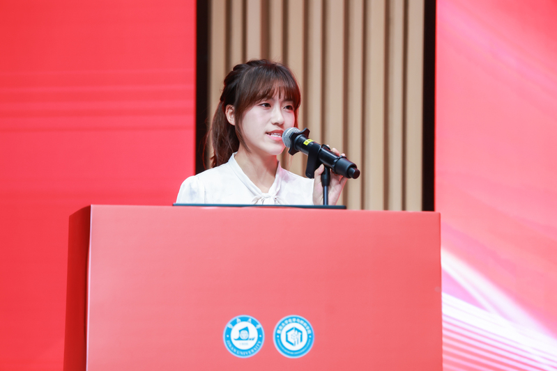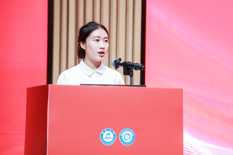 毕业生代表茹佳怡(本科生)和谭一叶(研究生)分别发言。